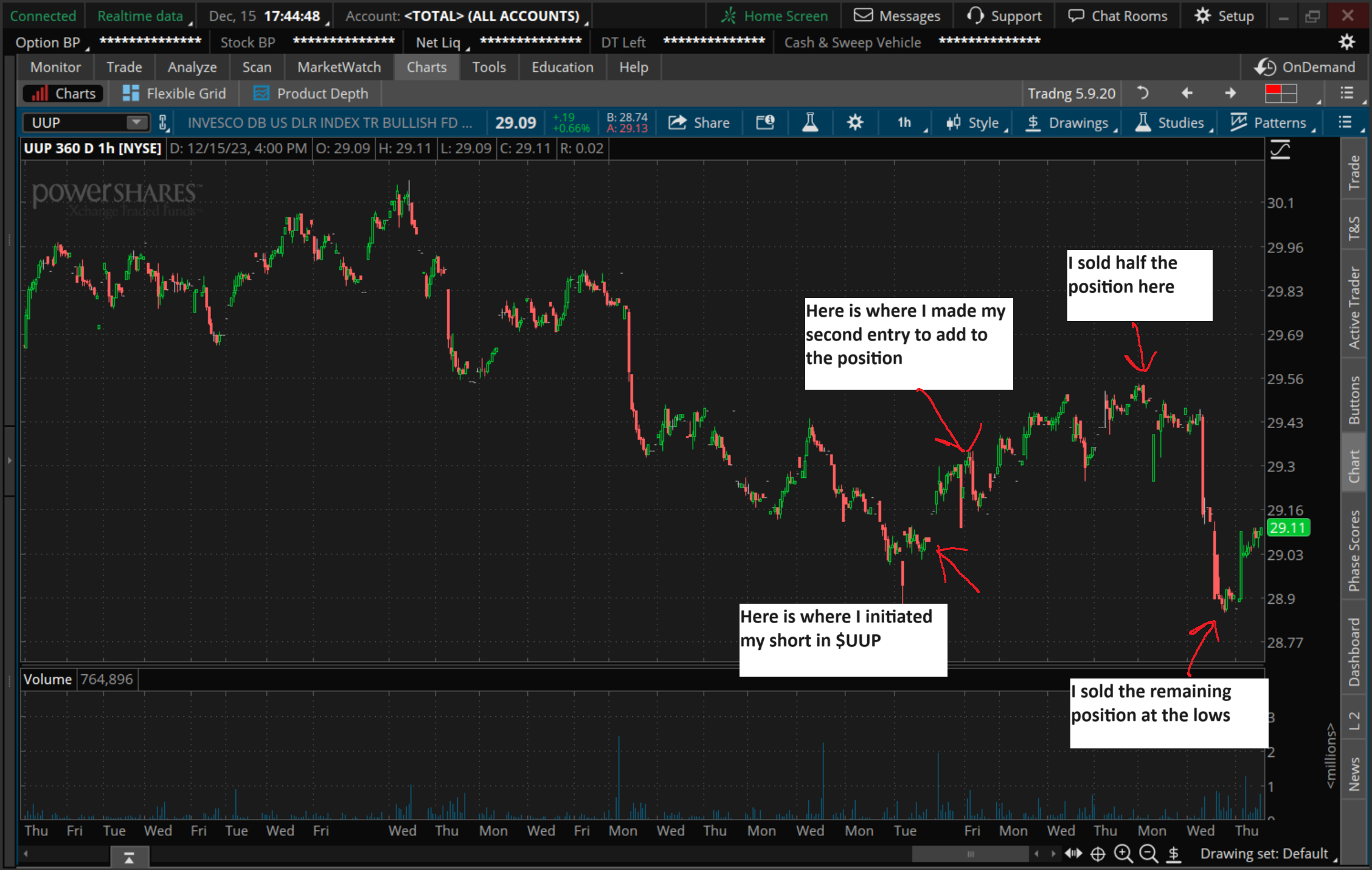 To short the USD, I didn’t do a forex trade, I bought puts on UUP, a US Dollar ETF.